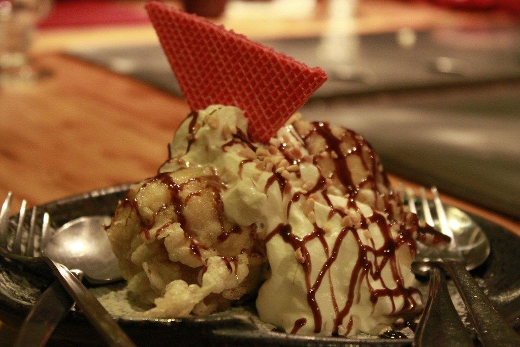 Momofuku Ko’s fried apple pie with sour ice cream and toasted miso