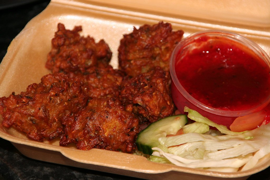Vegetable pakora is a popular Indian snack made by deep-frying mixed vegetables like onions, potatoes, spinach, and various spices coated in chickpea flour batter. It’s crispy on the outside and soft on the inside, perfect for enjoying with chutney or dipping sauces.