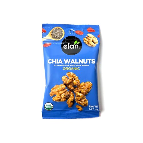 - WHOLESOME SNACK: Elan Organic Chia Walnuts are a satisfying blend of natural walnuts infused with chia seeds, goji berry powder, and Himalayan pink salt. These nutritious bites are perfect for snacking on the go