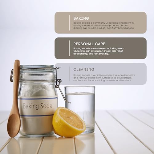 - Cleaning: Baking soda is a mild abrasive and a natural deodorizer. It can be used to clean a variety of surfaces, including countertops, appliances, and floors. Baking soda can also be used to remove stains from clothing, carpets, and furniture.
