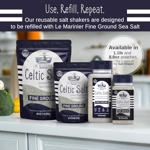 - AUTHENTIC FRENCH SEA SALT: Le Marinier French Sea Salt is hand harvested in the pristine French ocean marshes following a traditional method developed over a millennium ago. There are no additives or chemicals added, just pure French sea salt, as nature intended. Experience the authentic taste of Le Marinier in our convenient 1lb refillable shaker bottle.