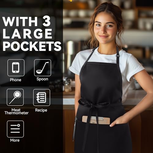 - Apron with 3 Pockets: NLUS Kitchen apron with 3 divided large pockets for holding recipe books, pens, money, tools and more. Aprons with pockets are reinforced with repeat stitching at critical seams to withstand wear and tear, sturdy and long-lasting