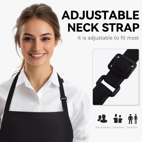 - Short Bib Apron: 24 inch long by 27.5 inch width cooking apron provides coverage from chest to thigh area. Two 39.4″ long waist straps can be wrapped from the front or from the back, depending on the user’s comfort