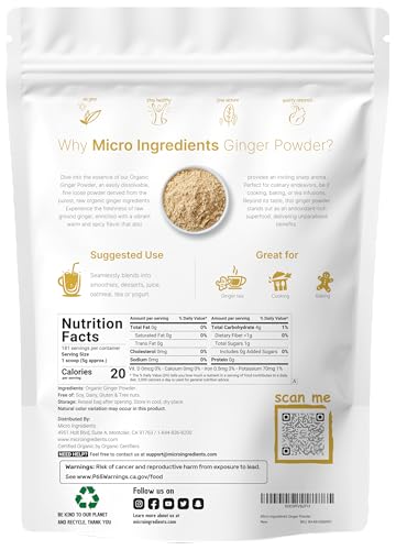 - Micro ingredients Raw Ground Ginger Powder Organic, Fine Loose Powder for Better Mixing without Settling, Non-GMO.