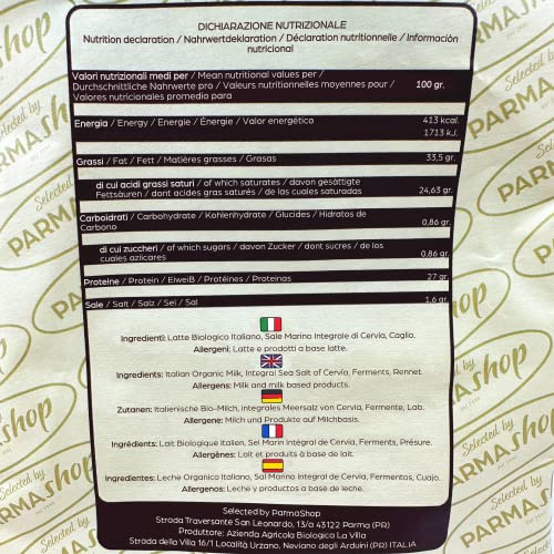 - Ingredients: Milk of Vacche Rosse of Reggio Emilia from biological agriculture, sweet salt of Cervia, and rennet