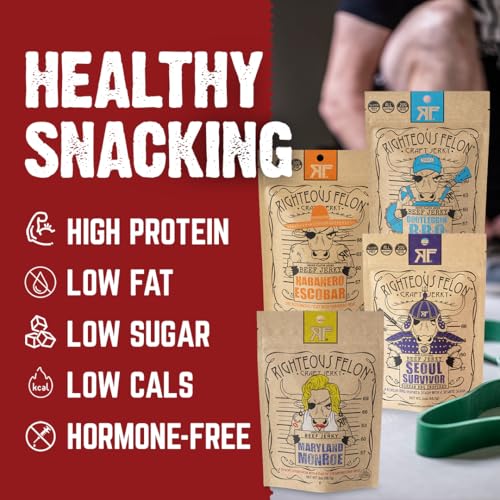 Righteous Felon Beef Jerky Variety Pack – Gluten Free, High Protein, Low Sugar, Low Calorie Healthy Jerky Snack Bundle