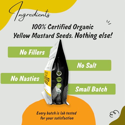 - USDA Certified Organic & Pure: Our yellow mustard seeds are sourced from USDA-certified organic farms, grown without synthetic chemicals to provide a clean, high-quality spice that enhances your recipes.