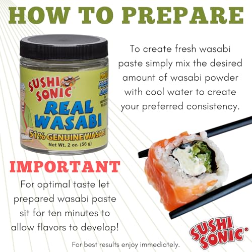 - Use Sushi Sonic 51% wasabi root powder in recipes for wasabi oil and homemade wasabi snacks such as popcorn, peas, and edamame.