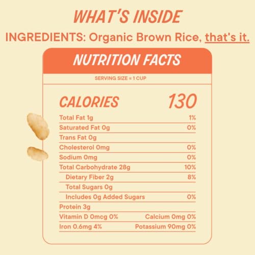 - INGREDIENTS: Organic Brown Rice, thatโs it.