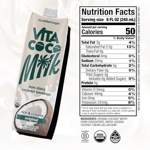 - Straight From the Coconut | Vita Coco Coconut MLK is 100% Organic, Non-GMO, Dairy-Free, Soy-Free, and has zero added sugar.