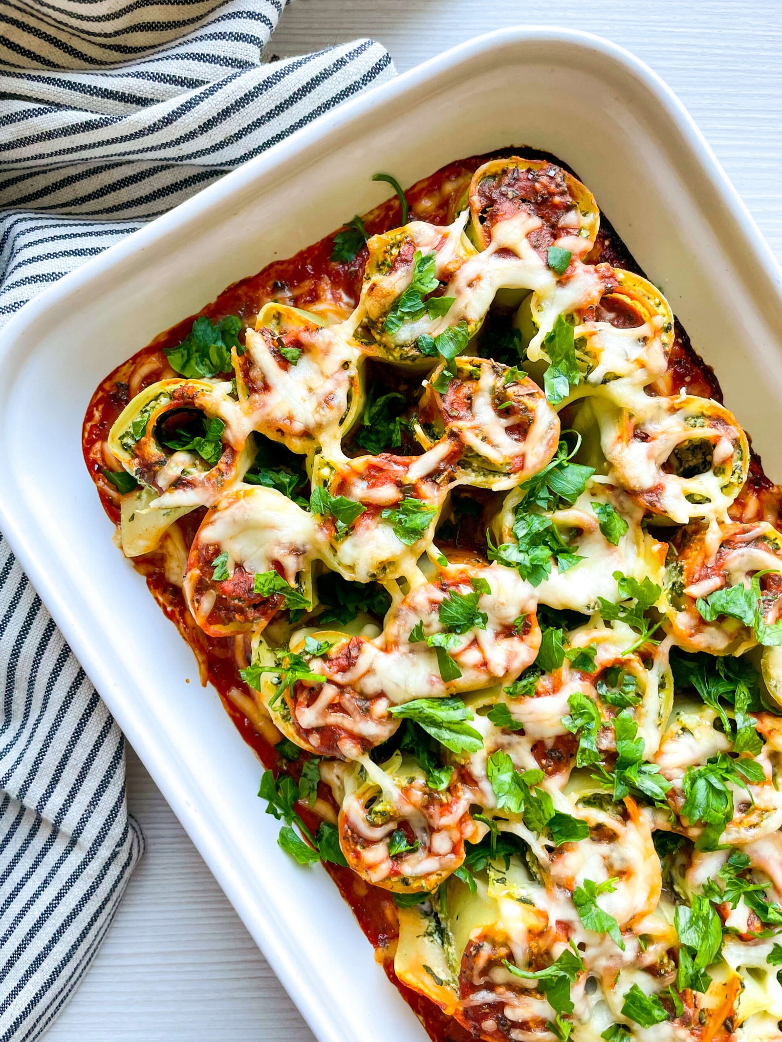 Lasagna is the quintessential comfort food. Always cheesy, always delicious. Rolled into lasagna roll ups, it looks elegant. Lasagna rolls are great for portion control, for meal prep and are easily frozen.