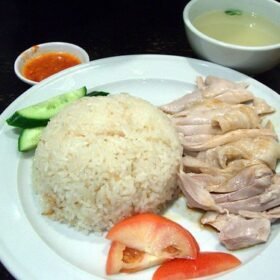 Hainanese chicken rice is a delicious Chinese dish. It typically consists of tender poached chicken served on fragrant rice cooked in chicken broth, accompanied by a variety of condiments such as chili sauce and ginger. The chicken is usually cooked with care to maintain its juiciness and tenderness, resulting in a flavorful and satisfying meal.