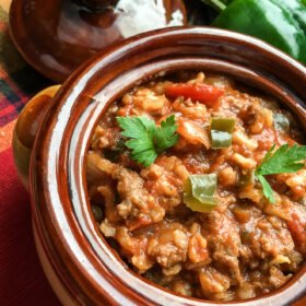 Calories: 341kcal (17%)Carbohydrates: 23g (8%)Protein: 38g (76%)Fat: 11g (17%)Saturated Fat: 4g (25%)Polyunsaturated Fat: 1gMonounsaturated Fat: 5gTrans Fat: 1gCholesterol: 94mg (31%)Sodium: 810mg (35%)Potassium: 1187mg (34%)Fiber: 5g (21%)Sugar: 8g (9%)Vitamin A: 1134IU (23%)Vitamin C: 67mg (81%)Calcium: 104mg (10%)Iron: 7mg (39%)
