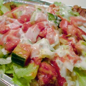 Kapsalon is a popular Dutch fast food dish that typically consists of French fries topped with döner or shawarma meat, melted Gouda cheese, and a variety of toppings like lettuce, tomato, cucumbers, and sauces such as garlic sauce and sambal. It's a delicious and indulgent treat!