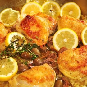 Lemon Garlic Chicken Thigh is a delicious dish made with chicken thighs marinated in a zesty blend of lemon juice, garlic, and other flavorful herbs and spices. The chicken is usually pan-seared or grilled.