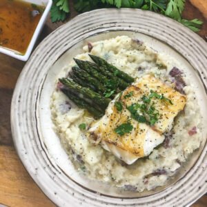 Calories: 372kcal (19%)Carbohydrates: 1gProtein: 33g (66%)Fat: 26g (40%)Saturated Fat: 12g (75%)Polyunsaturated Fat: 2gMonounsaturated Fat: 10gTrans Fat: 1gCholesterol: 108mg (36%)Sodium: 94mg (4%)Potassium: 847mg (24%)Fiber: 1g (4%)Sugar: 1g (1%)Vitamin A: 940IU (19%)Vitamin C: 5mg (6%)Calcium: 55mg (6%)Iron: 2mg (11%)