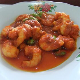 Sambal goreng udang is a delicious Indonesian dish made with prawns (udang) cooked in a fragrant and spicy sauce called sambal. The prawns are usually stir-fried with a variety of ingredients like onions, garlic, chili peppers, and other spices to create a flavor-packed dish. It's often served with steamed rice or as a side dish.