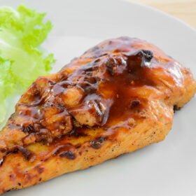 Calories: 386kcal (19%)Carbohydrates: 30g (10%)Protein: 49g (98%)Fat: 6g (9%)Saturated Fat: 1g (6%)Polyunsaturated Fat: 1gMonounsaturated Fat: 2gTrans Fat: 0.03gCholesterol: 145mg (48%)Sodium: 1171mg (51%)Potassium: 1028mg (29%)Fiber: 1g (4%)Sugar: 24g (27%)Vitamin A: 277IU (6%)Vitamin C: 10mg (12%)Calcium: 38mg (4%)Iron: 1mg (6%)