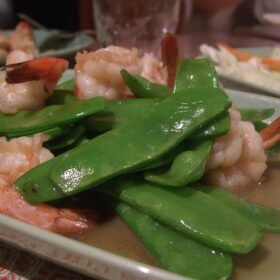 Stir-fried snow peas with prawns is a delicious dish made by quickly cooking prawns and snow peas together in a hot pan with some oil and seasonings.